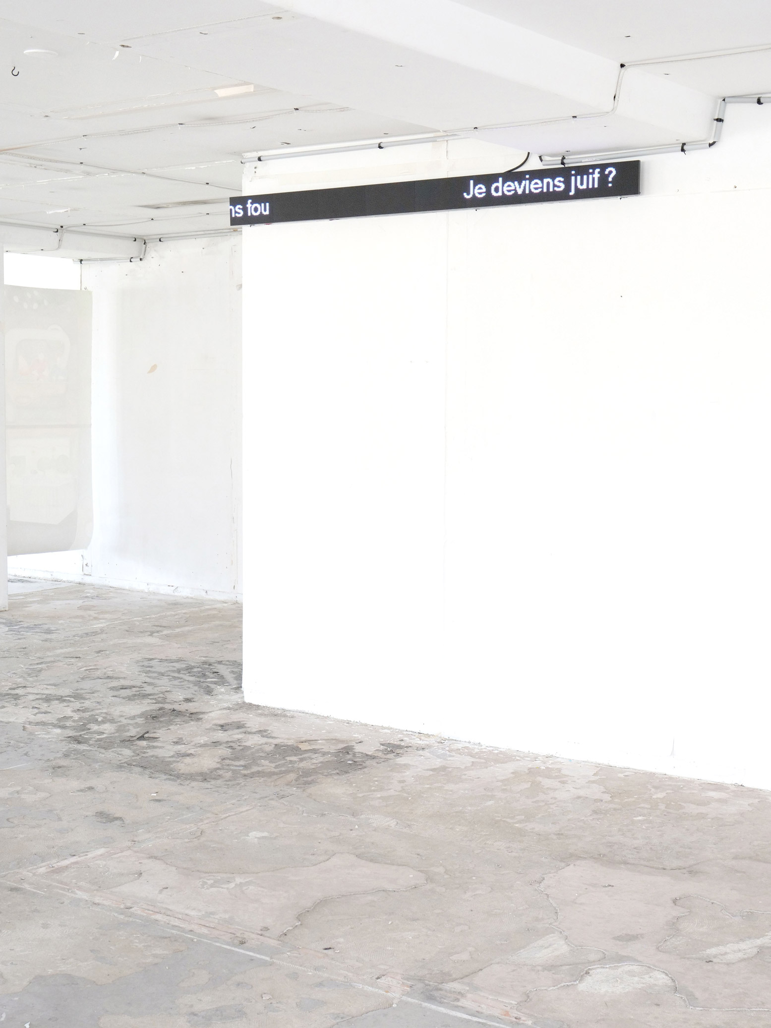 « Je deviens chauffeur Uber », « je deviens végétarien », « je deviens riche en une semaine »… Ensemble, ils composent une litanie de possibles, un autoportrait éclaté et collectif. Le rythme du panneau LED, qui rappelle les bandeaux boursiers ou les flux d’informations en continu, inscrit ces identités en mouvement dans un espace de spéculation permanente.