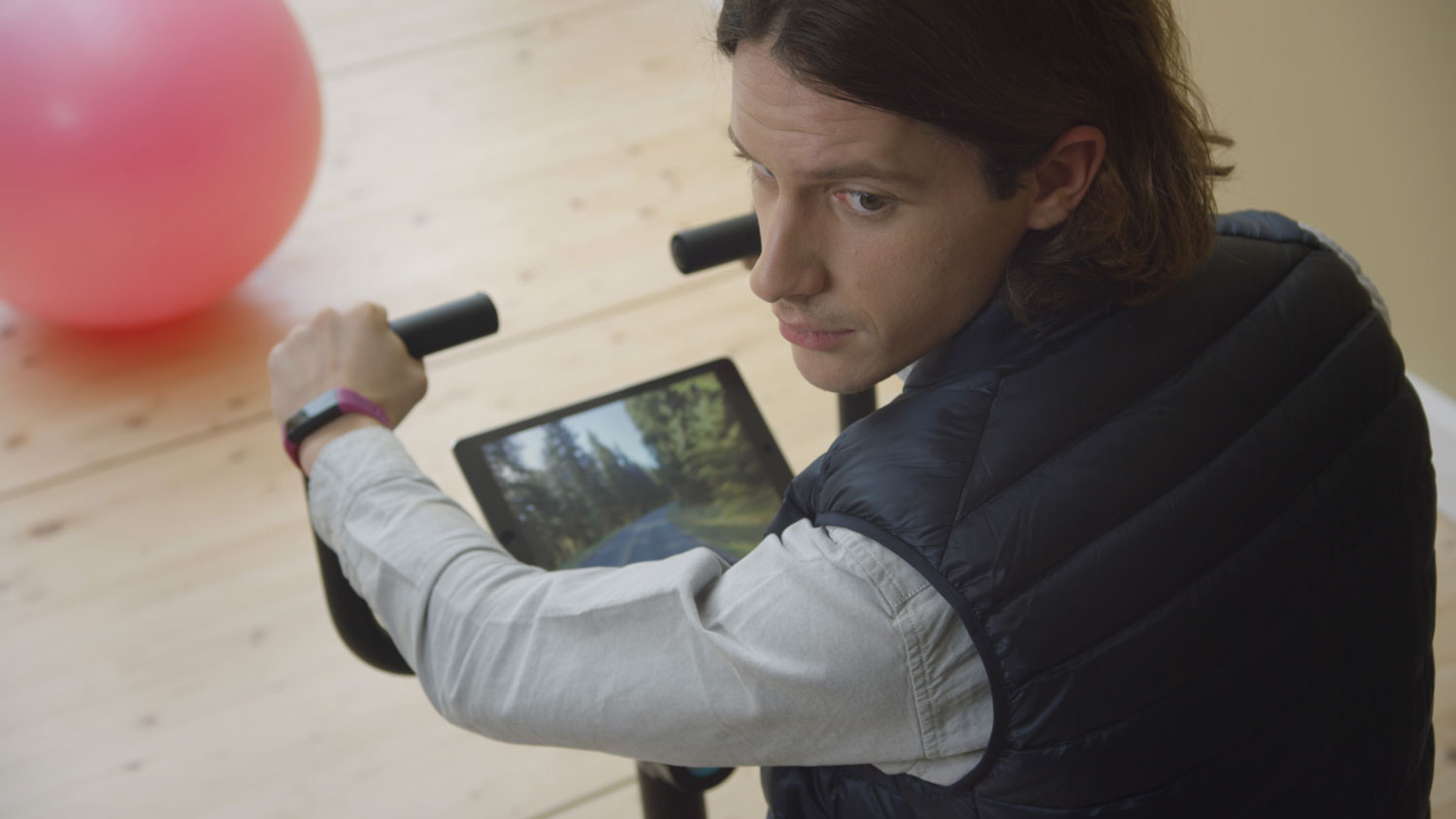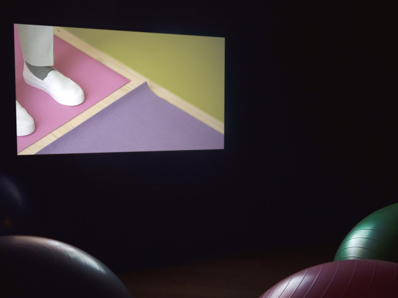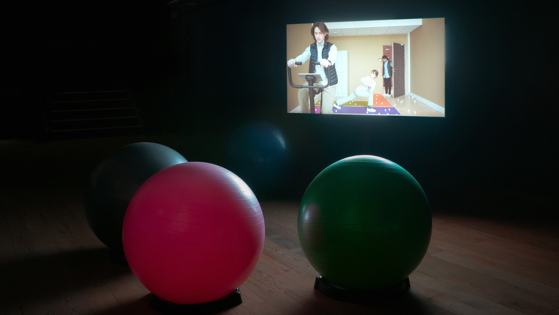 Film 4K, 19’00'', écran 65 pouces, Swiss Balls, casque audio
