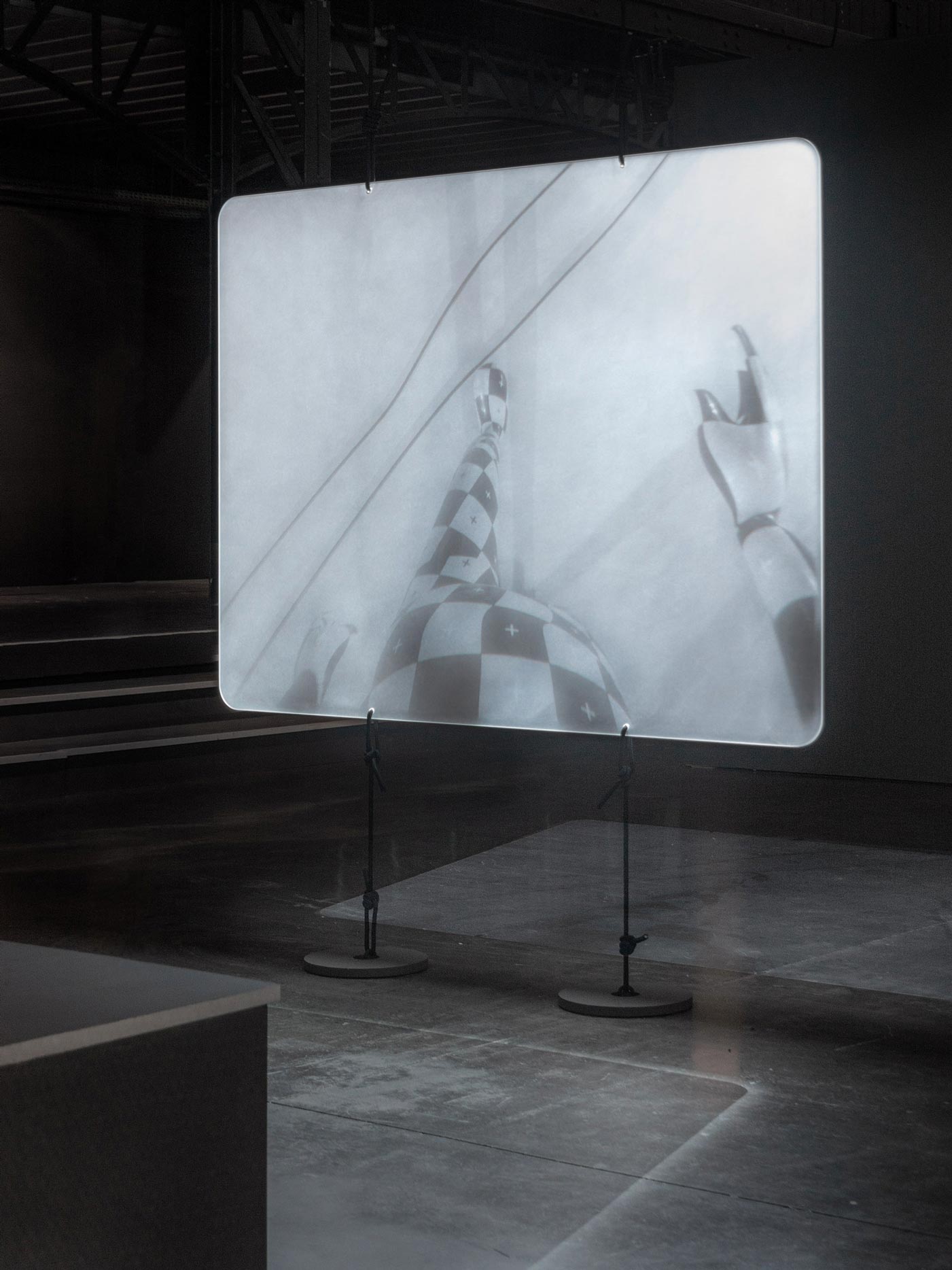 Dans une caverne à fictions, un personnage sans histoire nous accueille. Alors qu’il traverse un gradient de lumière artificielle, notre avatar découvre son ombre portée. Quand la symétrie vient à se briser, un duel en nuance de gris s’engage, où la rationalité surexpose quand la peur assombrit.