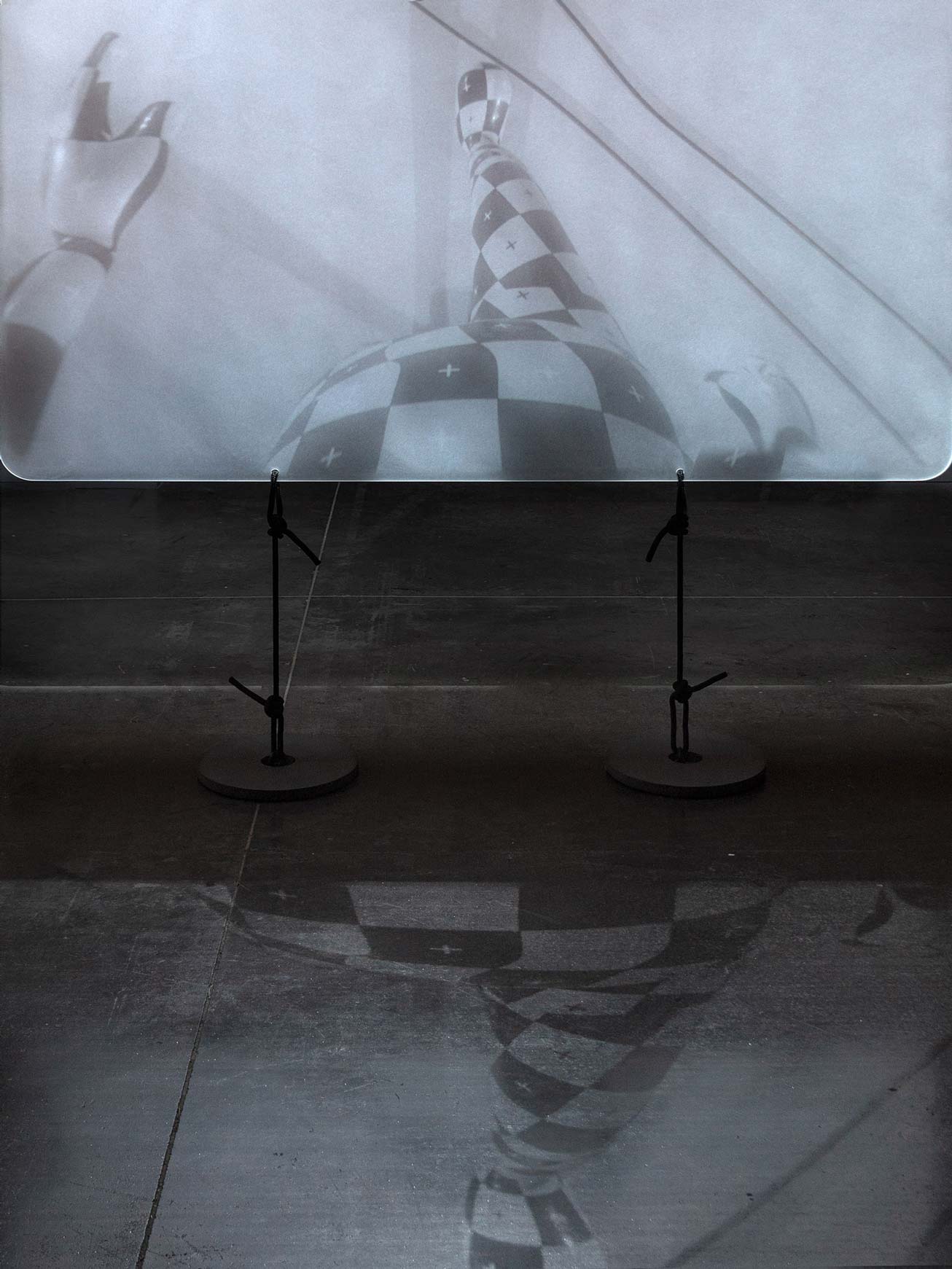 Installation : Plexiglas dépoli, 165x124 cm, drisse, divers nœuds